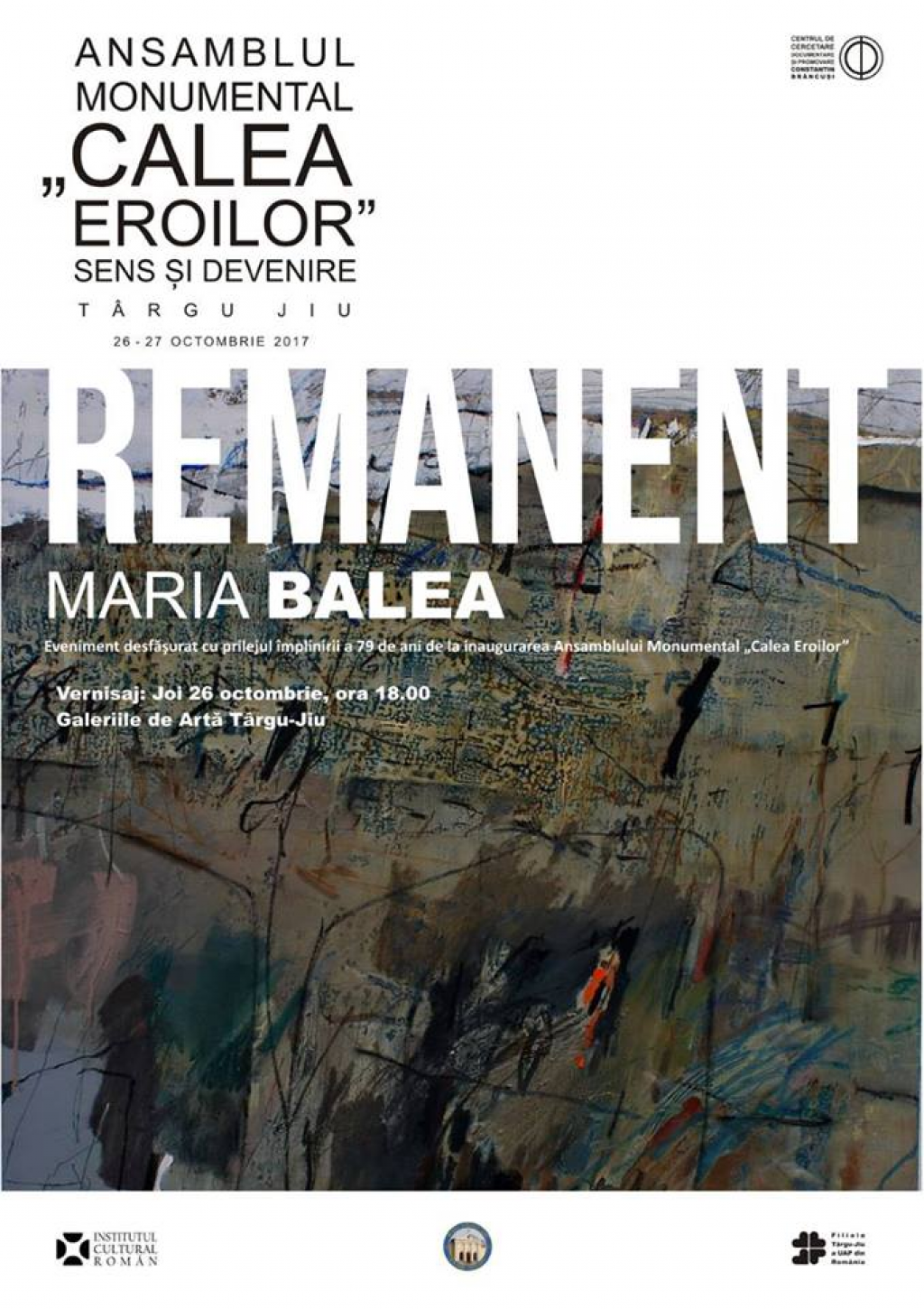 • Vernisajul expoziției „REMANENT” a artistei plastice Maria BALEA, la Galeriile Municipale de Artă din Târgu Jiu, str. Traian nr. 7.