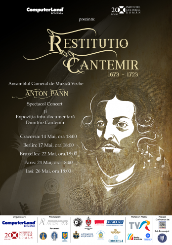 În prima etapă a proiectului „RESTITUTIO CANTEMIR”, în luna mai, în cadrul unui amplu turneu susținut de Ansamblul Cameral de Muzică Veche „Anton Pann”, vor fi organizate, atât în țară, cât și în străinătate, cinci concerte care vor pune în evidență compoziții muzicale create de Dimitrie Cantemir:
