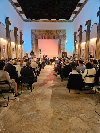 Sala Mare a Institutului Cultural Român a fost arhiplină miercuri, 1 octombrie 2025, cu prilejul recitalului extraordinar organizat de Asociația Culturală Ion Voicu, avându-i ca protagoniști pe Alexandru Tomescu și Mădălin Voicu Jr., dar și al lansării de carte / crestomație de Fabian Anton, cu și despre Ion Voicu.