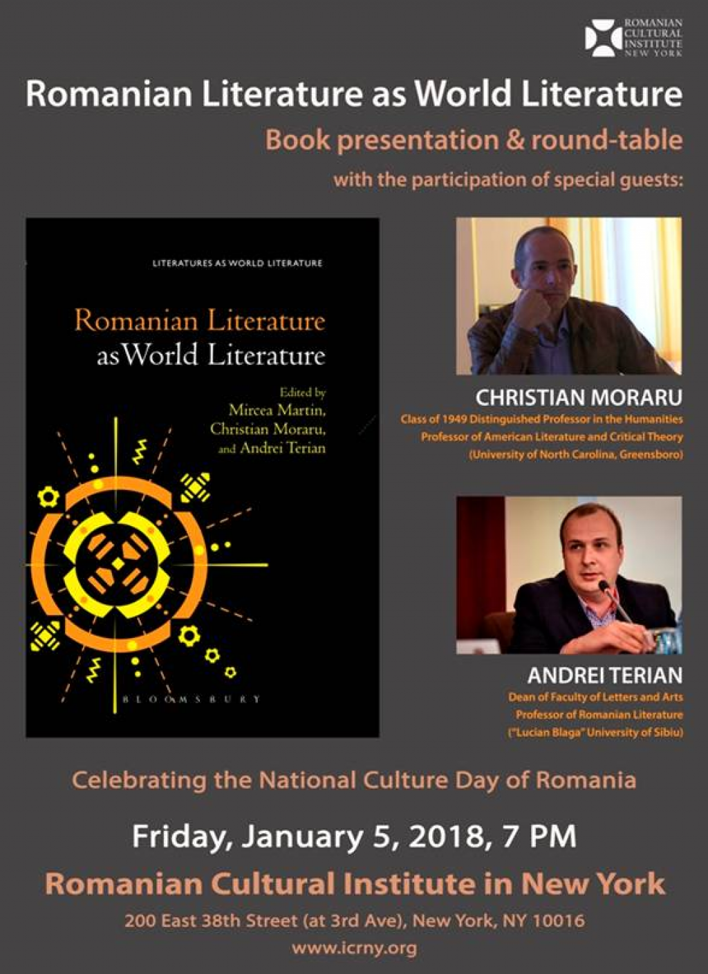 română ca literatură a lumii”), vineri, 5 ianuarie 2018,