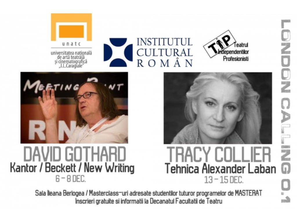 Regizorul David Gothard și actrița Tracy Collier, personalități marcante ale teatrului britanic, vor fi prezenți în luna decembrie la București în cadrul primului modul al proiectului LONDON CALLING, susținut de Universitatea Națională de Artă Teatrală și Cinematografie „I.L. Caragiale“ cu sprijinul Institutului Cultural Român. Proiectul a fost inițiat de Alexandru Nagy, masterand în pedagogie teatrală la UNATC.