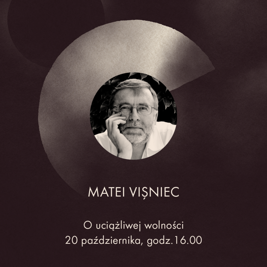 Matei Vișniec va dialoga cu traducătoarea poloneză Joanna Kornaś-Warwas despre „Povara libertății”, marți, 20 octombrie, de la ora 16.00, discuția fiind transmisă, prin live streaming, și pe pagina de Facebook a Institutului Cultural Român de la Varșovia, partener al Festivalului. Joanna Kornaś-Warwas a tradus recent în limba polonă două volume ale autorului român, Negustorul de începuturi de roman și Domnul K. eliberat, ambele publicate de Editura Universitas din Cracovia, în octombrie 2018, respectiv decembrie 2019, cu sprijinul Centrului Cărții din cadrul ICR, prin Programul TPS.