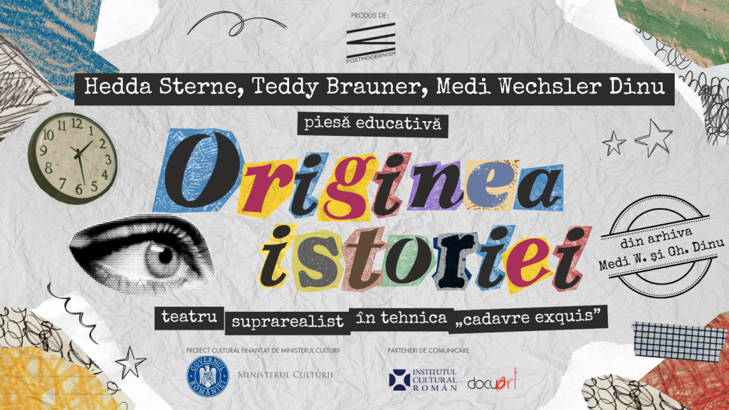 Spectacolul-lectură online este produs în cadrul proiectului „Din manuscris pe scena virtuală - restituirea piesei suprarealiste «Originea istoriei» de Hedda Sterne, Medi Wechsler Dinu și Teddy Brauner”.