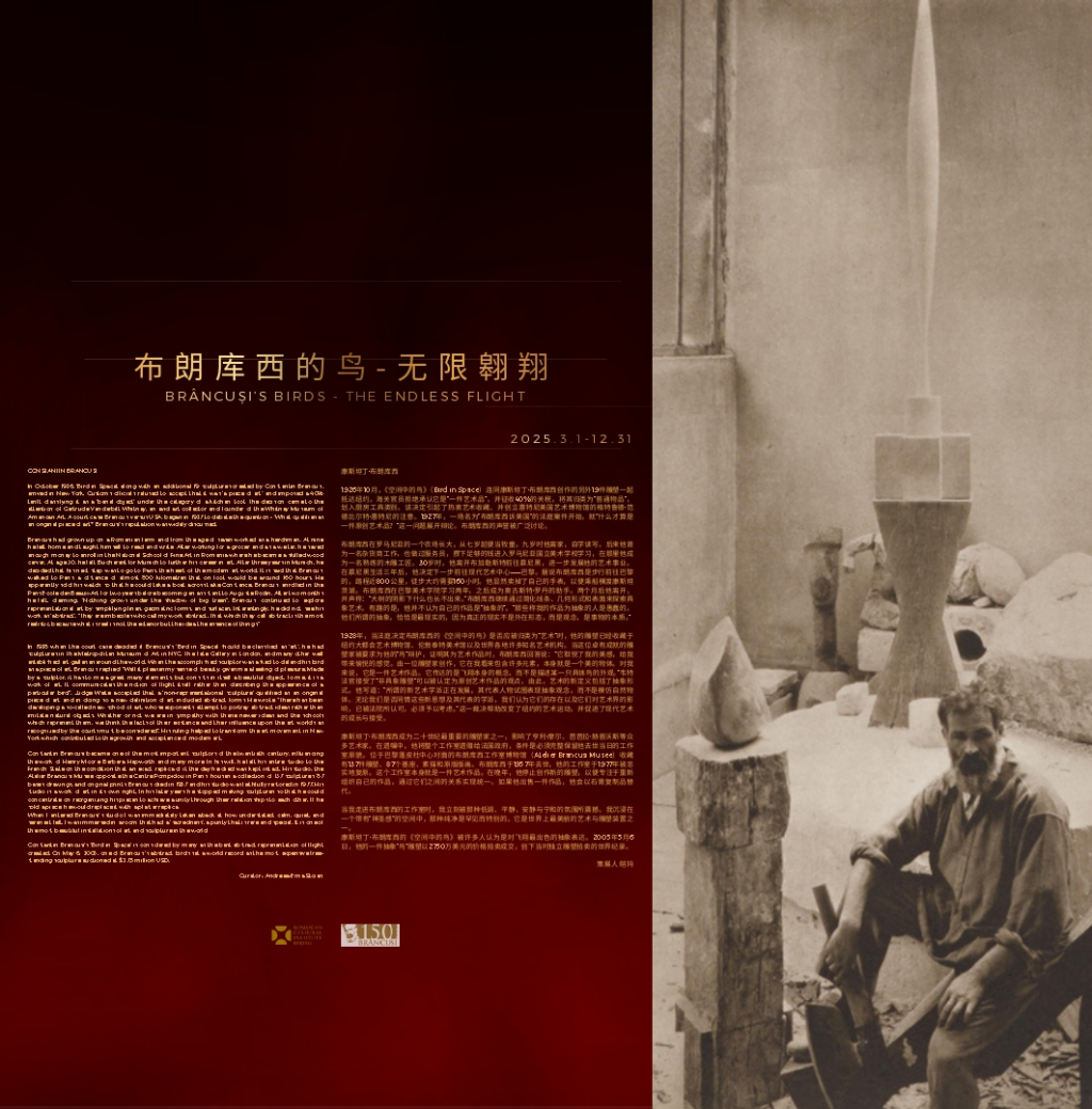 Over the course of four decades, Brâncuși explored the theme of the bird in flight through more than thirty versions in marble and bronze. Further remarkable insights can be discovered by visiting the exhibition “Brâncuși’s Birds – Endless Flight,” officially inaugurated on 1 March 2026 at 18:00 at the Romanian Cultural Institute in Beijing, accompanying the extraordinary concert “Brâncuși 150: The Sound of Forms,” performed by violinist Diana Jipa and pianist Ștefan Doniga.The exhibition will remain open until the end of 2026.The project is realized with the support of the National Gallery of Art, Washington, D.C., and museum specialist Peter Huestis.