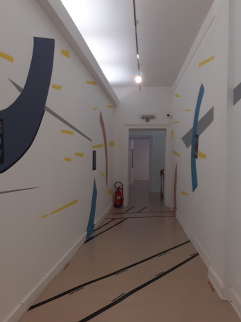 La rândul ei, artista Cristina David a relevat distanţa de la punctul A la punctul B, în mai multe camere, prin beţe de vată de zahăr lipite unul de celălalt şi agăţate deasupra celorlate lucrări pe tavan. „E vorba de o distanţă de 30 de cm între beţe şi această distanţă poate fi calculată printr-o linie frântă. Am lucrat într-o simbioză cu lucrările celorlaţi colegi şi cu spaţiu. E o linie continuă lipită, formată de 220 de beţe alăturate”, a povestit Cristina David.