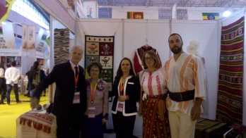 La standul țării noastre au fost expuse costume populare feminine din zonele Pădureni – Hunedoara, Muscel și Buzău, covoare de lână și din fir din păr de capră și fluiere, exponatele făcând parte din colecțiile invitaților. În cadrul expoziției, doamna Doina Ișfănoni a susținut prelegerea cu tema „Portul românesc de sărbătoare – Marcă a identității naționale”, iar cei doi artiști populari au purtat costume tradiționale, astfel încât publicul prezent să poată admira în realitate frumusețea și diversitatea costumelor populare românești. Publicul prezent la prelegere a primit din partea invitaților ilustrate cu costume populare, din diverse regiuni ale României.