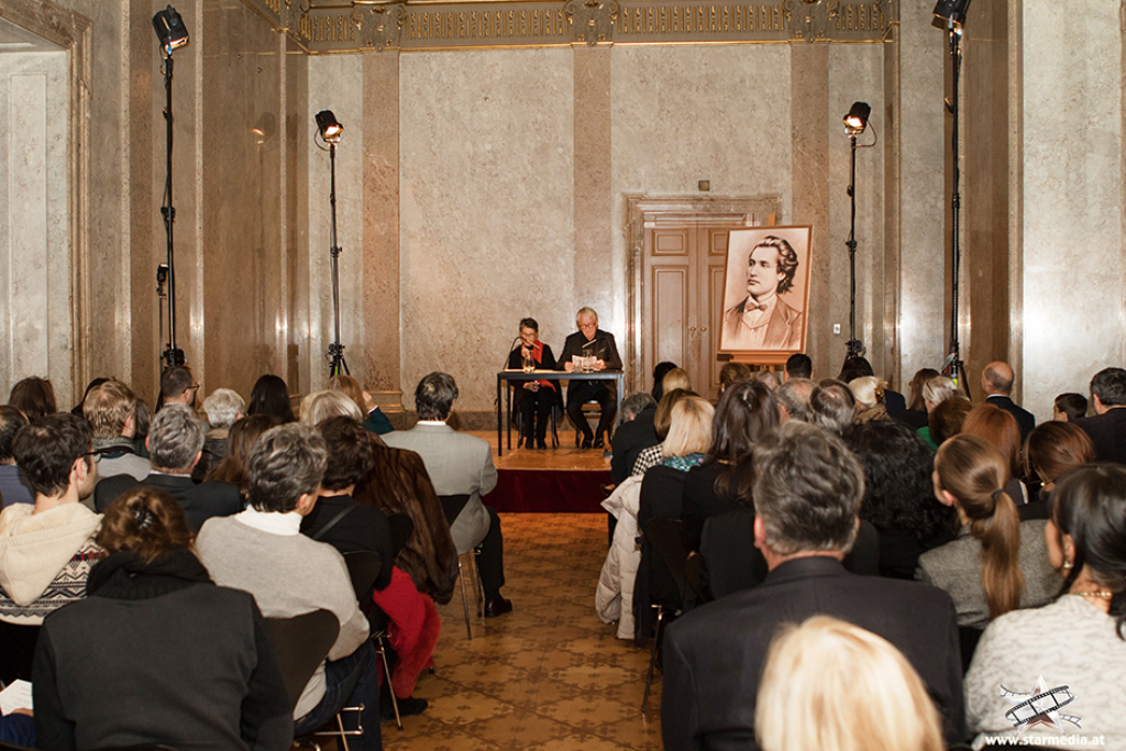 Manifestarea a deschis calendarul cultural al ICR Viena din acest an şi s-a bucurat de prezenţa doamnei Liliana Ţuroiu, preşedintele Institutului Cultural Român. „Importanța Vienei în biografia lui Eminescu, în formarea sa culturală, conferă o semnificație specială demersurilor menite să-i celebreze personalitatea în acest spațiu, în această seară“, a spus președintele ICR, în debutul evenimentului de la Palais Lobkovitz.„Există, o știm bine, un risc de care e pândită orice asemenea acțiune derulată într-un cadru oficial: acela de a cădea pradă unui anumit festivism, în contradicţie cu însuși spiritul celui omagiat. Provocarea este să păstrăm spiritul eminescian viu, prin tot ceea ce facem și de a-l aduce astfel în fața publicului străin. Iar cei în măsură să reușească acest lucru, atunci când este vorba despre opera unui artist, sunt alți artiști. Așa cum sunt actorii Mercedes Echerer şi Gerhard Brössner, cei care îi vor da glas în cele ce urmează. Le mulțumesc acestora, în numele Institutului Cultural Român, pentru acceptul de a fi protagoniști ai acestui proiect şi de asemenea, pianistei Lia Popa, colegilor de la ICR Viena și partenerilor noștri. Nu în ultimul rând, vă adresez mulțumiri dumneavoastră, cei care ne sunteți alături cu acest prilej, la început de An Centenar al României moderne”, a subliniat doamna Liliana Țuroiu, președintele ICR.