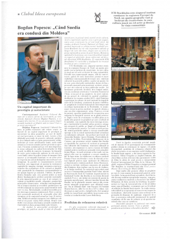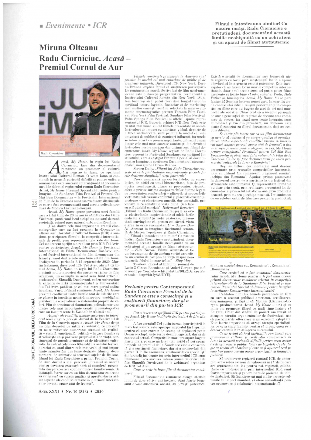 Un interviu cu directorul ICR Stockholm, Bogdan Popescu, și un interviu în exclusivitate cu regizorul Radu Ciorniciuc, semnat de Miruna Olteanu, director Direcția Comunicare și Promovare ICR, fac parte din cuprinsul celui mai recent număr al revistei „Contemporanul״ (octombrie 2020). Titular de rubrică, președintele ICR, Mirel Taloș, semnează în calitate de autor de romane un fragment din noul volum intitulat „Strania poveste a unui pian”.