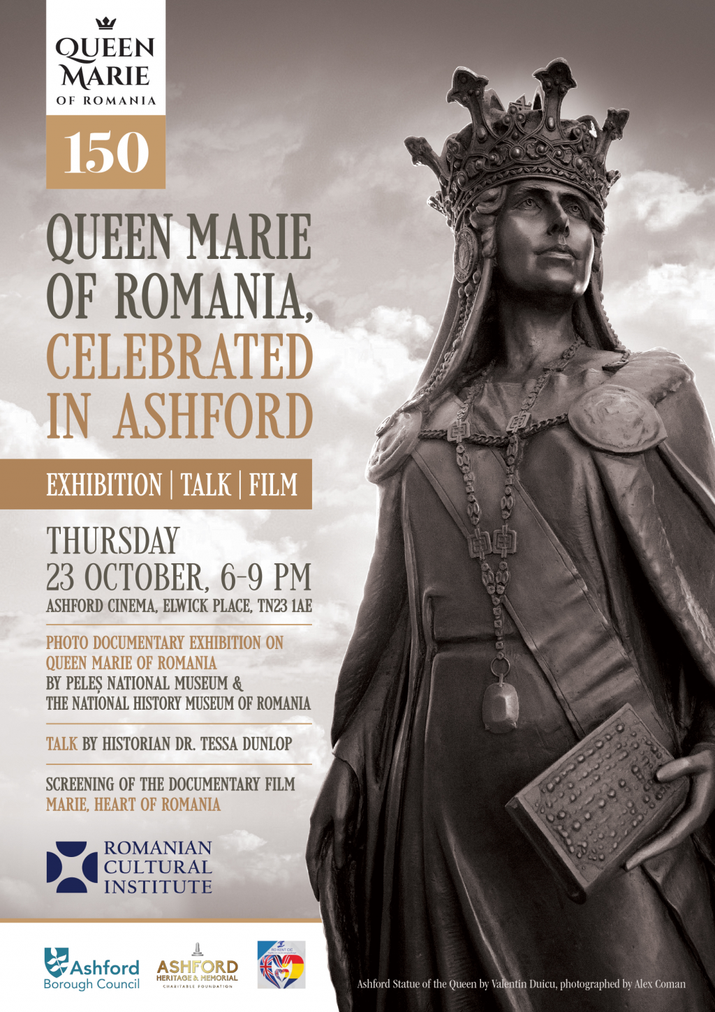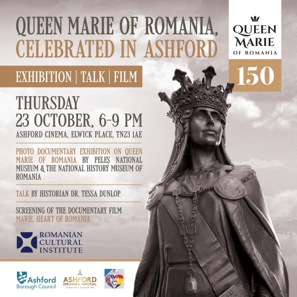 În data de 23 octombrie 2025, Institutul Cultural Român de la Londra încheie programul aniversar dedicat împlinirii a 150 de ani de la nașterea Reginei Maria a României printr-o serie de evenimente speciale, organizate în Kent, unde suverana s-a născut, la Eastwell Manor, în anul 1875. Evenimentele sunt organizate în partenriat cu Consiliul Local Ashford.