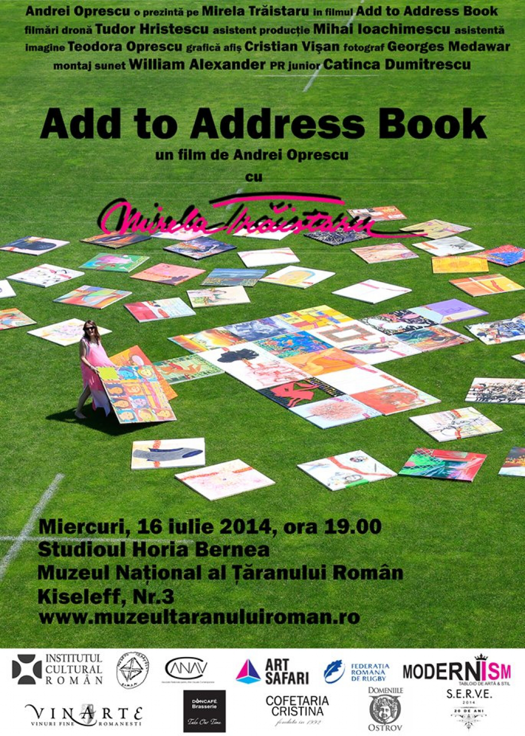 Miercuri, 16 iulie 2014, ora 19.00, la Muzeul Național al Țăranului Român – Studioul Horia Bernea – va avea loc proiecția scurtmetrajului Add to Address Book, realizat de Andrei Oprescu la standul artistei Mirela Trăistaru din cadrul Art Safari/Pavilionul de artă Bucureşti.
