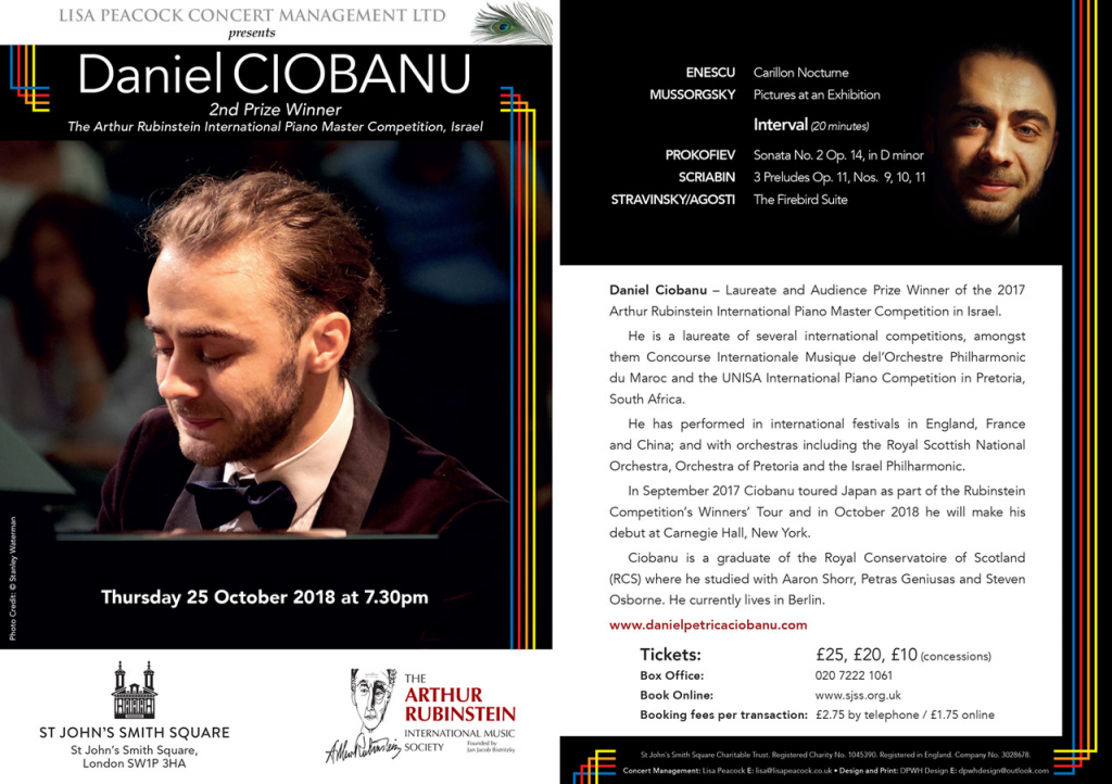 Join us for yet another performance on London’s classical scene by Romanian rising-star pianist Daniel Ciobanu, 2nd Prize winner and audience favourite in the Arthur Rubinstein International Piano Master Competition 2017! After a most successful evening at the Romanian Cultural Institute within the Enescu Concerts Series, the “devilish” and “unforgettable” musician returns with an exciting programme in one of London’s musical landmarks, St John’s Smith Square. Don’t miss the chance to hear his music, “a cocktail of serious classical music combined with the lollipops and fireworks of the piano repertoire”!