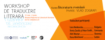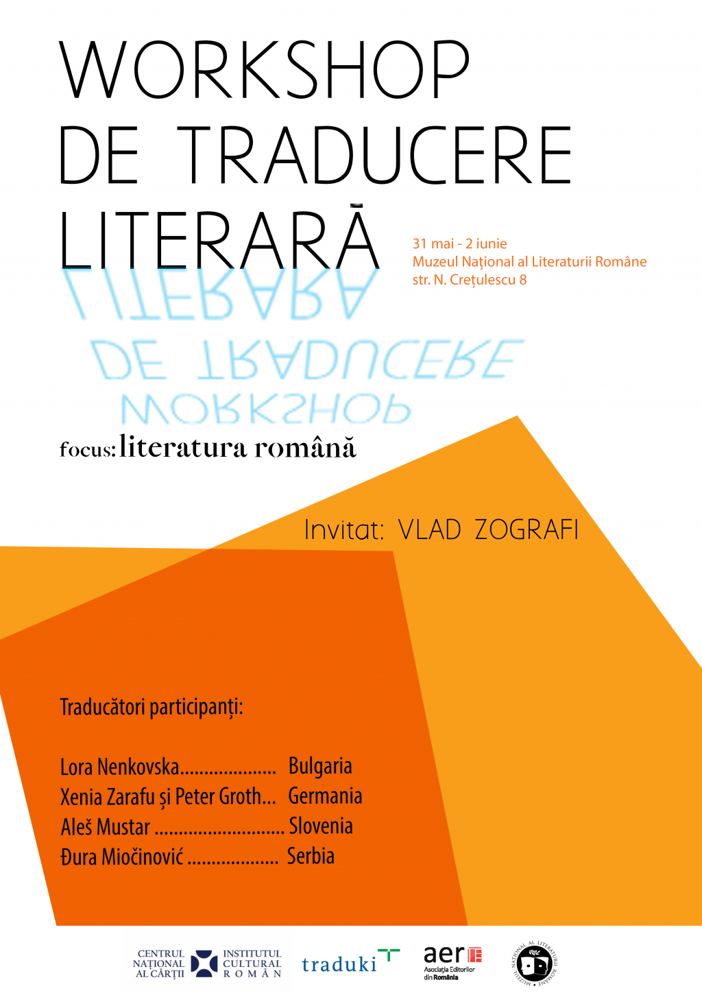 Atelier de traducere literară – Focus: literatura română. Organizator: Institutul Cultural Român prin Centrul Național al Cărții, Fundația TRADUKI. Cu sprijinul Muzeului Național al Literaturii Române și al Asociației Editorilor din România. Contact: ioanagruenwald@gmail.com; simona.sora@icr.ro