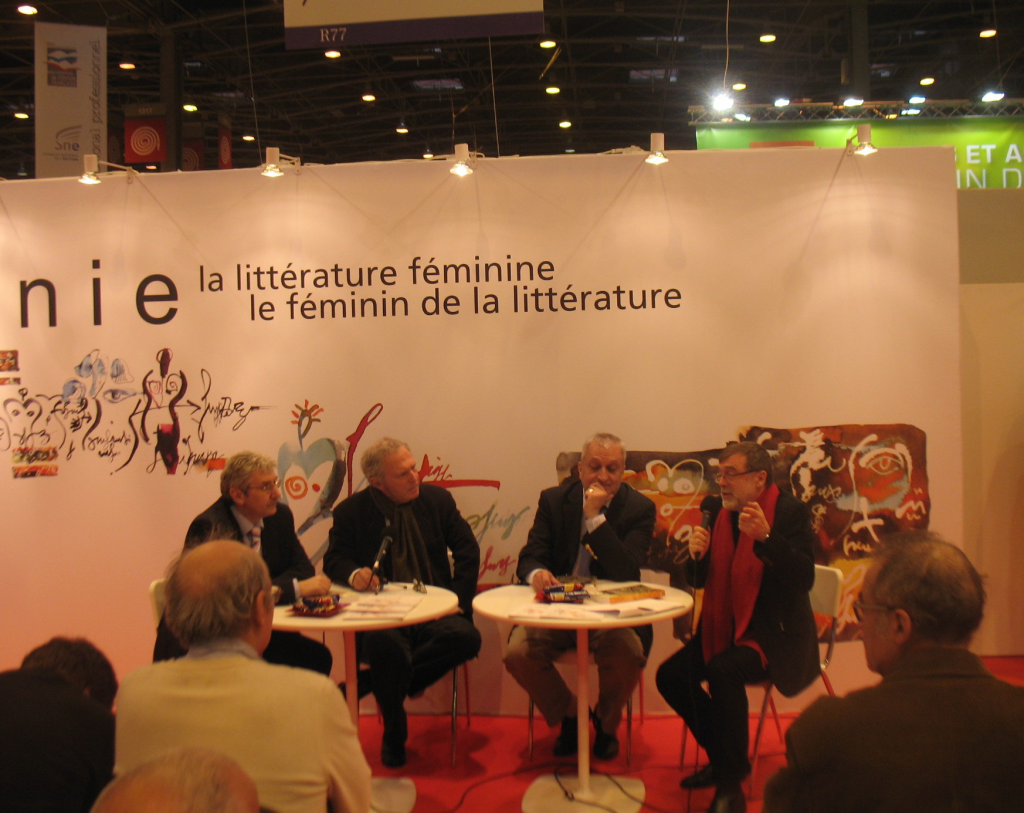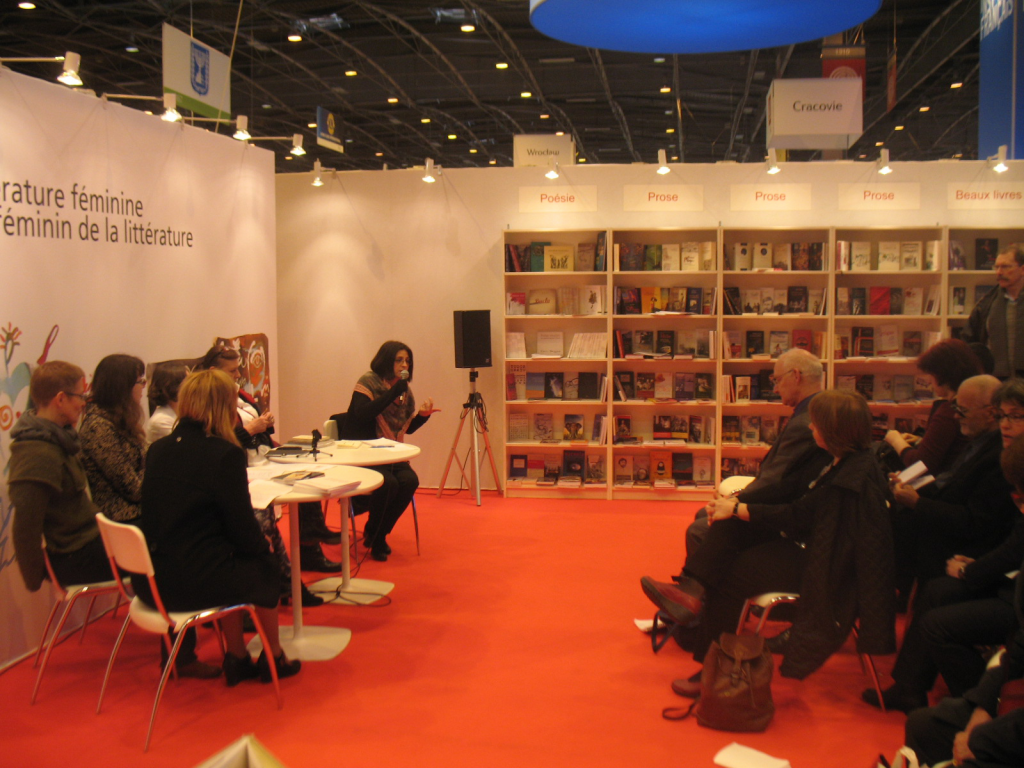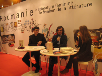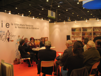 Tema primei dezbateri de la standul României a coincis cu genericul participării româneşti la această ediţie a Salon du Livre: La littérature féminine, le féminin de la littérature. Linda Maria Baros (moderatoare), Aïda Valceanu, Florina Ilis şi Dinu Flămând au discutat despre pertinenţa distincţiei feminin/masculin în literatură, despre posibilele moduri de reflectare a ei, distincţii în diferite genuri (proză, poezie ş.a.), dar şi despre statutul autoarelor în România. O tematică apropiată, dintr-un unghi academic, dar şi cu ilustrări în versuri, a fost dezvoltată în discuţia următoare, moderată de Bianca Burţa-Cernat, despre Imaginarul feminin, discuţie care le-a reunit pe Nina Corcinschi, critic literar, şi Victoria Fonari, poetă, cadre didactice universitare la Chişinău, şi pe scriitoarele Ioana Crăciunescu, Simona Popescu şi Selyem Zsuzsa, cercetătoare la Universitatea Babeş-Bolyai din Cluj.
