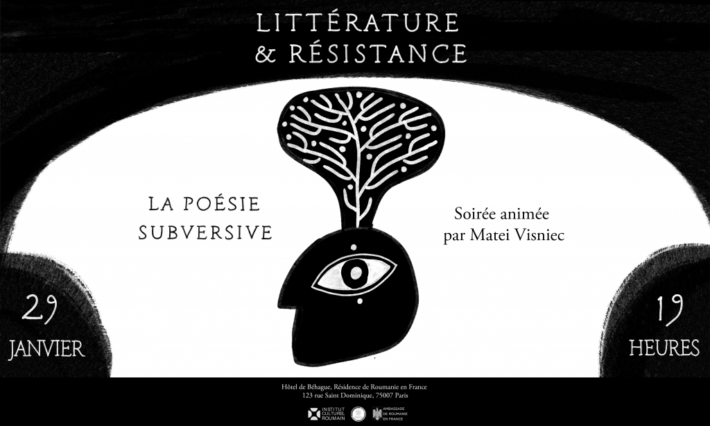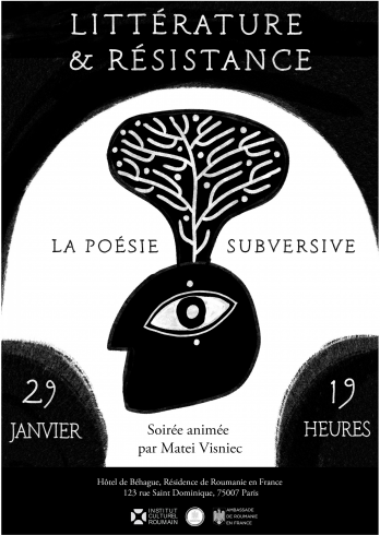 Institutul Cultural Român de la Paris organizează o seară literară omagială dedicată scriitorului Matei Vișniec – poet, dramaturg, prozator, jurnalist – la 55 de ani de activitate literară și 70 de ani de la naștere. Evenimentul intitulat „Literatură și rezistență: poezia subversivă” va avea loc joi, 29 ianuarie 2026, de la ora 19:00, la Palatul Béhague din Paris și va avea ca temă principală poezia angajată și discursul disident. Matei Vișniec va vorbi despre creația sa, despre parcursul său din România în Franța, abordând tema exilului, va explica de ce poezia a fost un spațiu al libertății, al contestării și al creației subversive în România, și va prezenta câteva poeme publicate înainte de 1989.