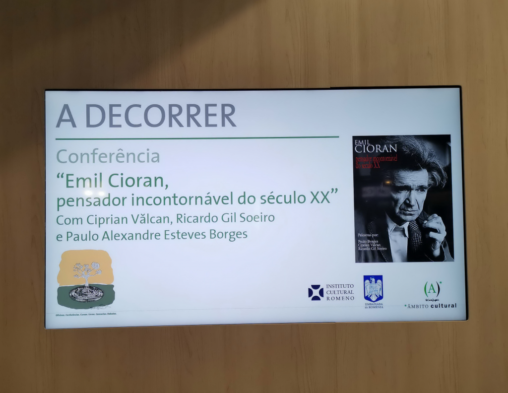 Cioran, gânditor esențial al secolului XX“, organizat de Institutul Cultural Român de la Lisabona și Ambasada României în Republica Portugheză, în parteneriat cu Direcția de Activități Culturale de la El Corte Inglés, a avut loc pe 11 octombrie.