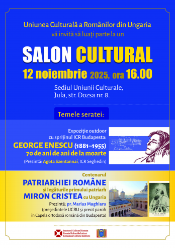 Salonul Cultural din Jula marchează 70 de ani de la moartea lui George Enescu prin expoziția „George Enescu în Franța” Uniunea Culturală a Românilor din Ungaria (UCRU) și-a asumat un rol activ în păstrarea și promovarea identității naționale