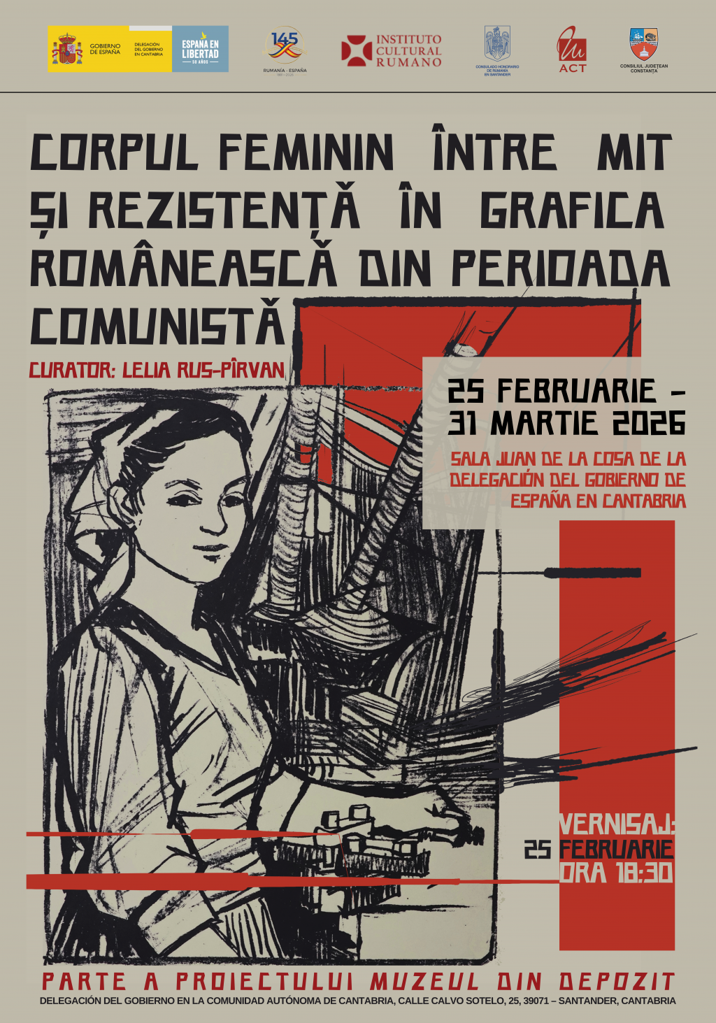 Institutul Cultural Român de la Madrid și Muzeul de Artă din Constanța (MACT), cu sprijinul Consulatului onorific al României în Cantabria, sub auspiciile Ambasadei României în Regatul Spaniei, organizează, în perioada 25 februarie – 31 martie 2026, în localitatea Santander, expoziția „Corpul feminin, între mit și rezistență în grafica românească din perioada comunistă“, la sediul Delegației Guvernului spaniol în Comunitatea autonomă Cantabria.