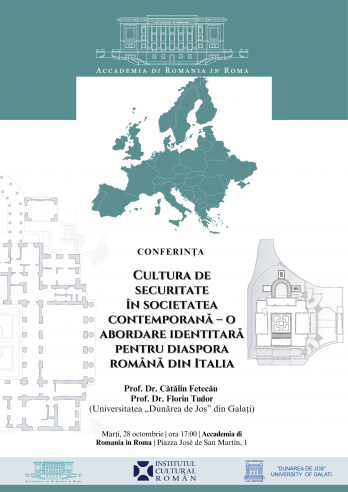 Accademia di Romania in Roma, în colaborare cu Universitatea „Dunărea de Jos” din Galați, organizează în 28 octombrie 2025, cu sprijinul Institutului Cultural Român, conferința Cultura de securitate în societatea contemporană – o abordare identitară pentru diaspora română din Italia.