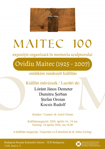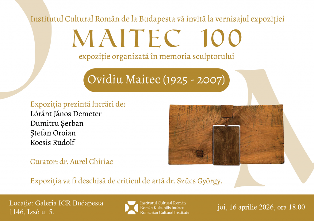 Institutul Cultural Român de la Budapesta organizează expoziția comemorativă „Maitec 100”, dedicată memoriei sculptorului român Ovidiu Maitec (1925–2007), una dintre personalitățile majore ale artei românești din secolul XX.