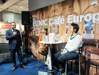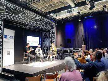 La standul EUNIC,de la ora 15.00, va fi organizată dezbaterea „A construi punți între țări: Suedia și România - aspecte ale dialogului cultural”. Profesorul Ingmar Söhrman, de la Universitatea din Göteborg, și traducătoarea Åsa Apelkvist vor pune în evidență că, deși Suedia și România aparțin unor regiuni și tradiții istorico-culturale diferite, există un interes comun pentru dialog, cooperare și schimb cultural.