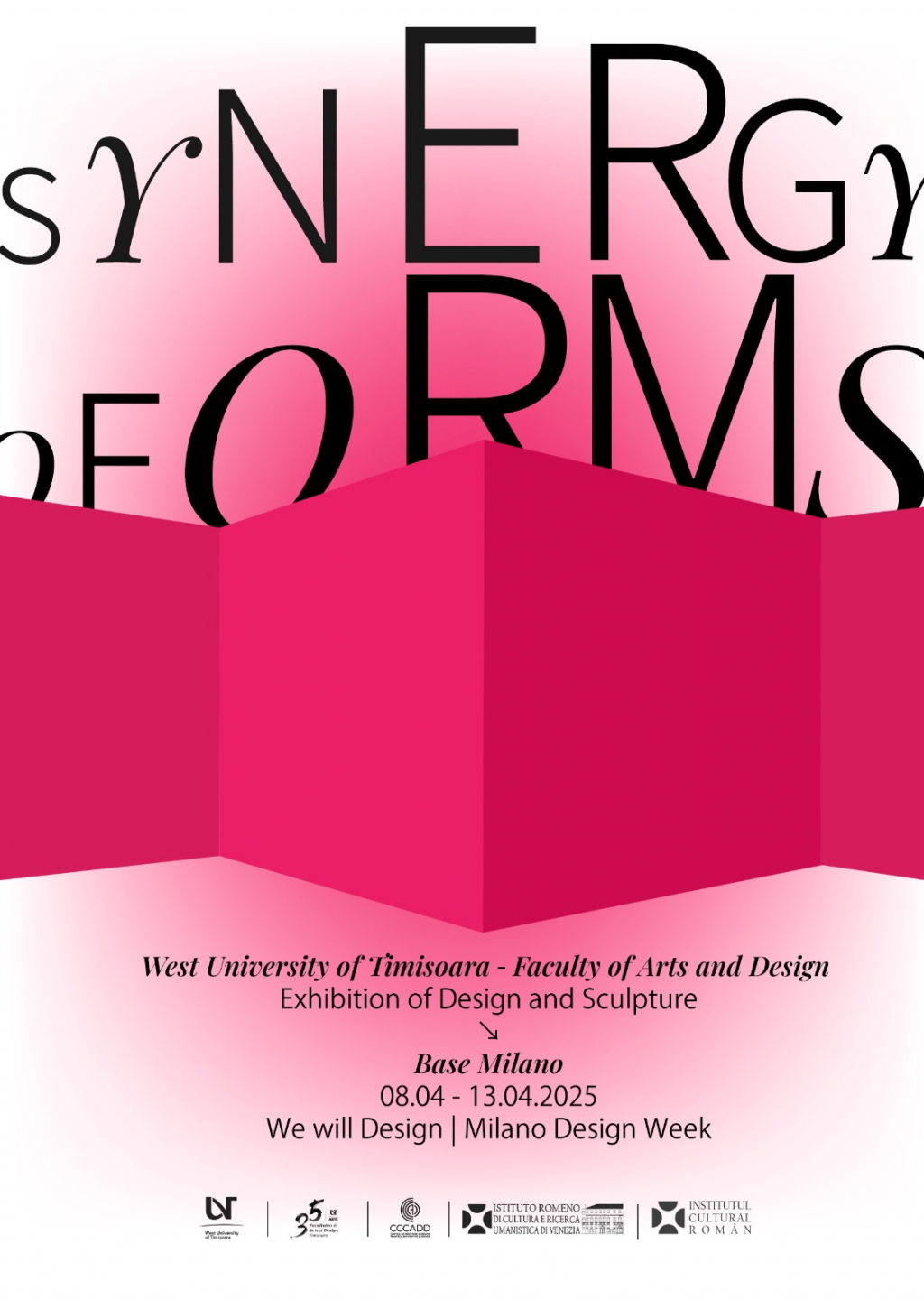 Institutul Român de Cultură şi Cercetare Umanistică de la Veneţia susţine designul românesc la cea de-a cincea participare consecutivă la Milano Design Week. Proiectul „Sinergia formelor”, realizat de studenţii şi cadrele didactice de la Departamentul de Design şi Arte Aplicate – Design şi Departamentul de Arte Vizuale – Sculptură din cadrul Facultăţii de Arte şi Design a Universităţii de Vest din Timişoara, în cadrul proiectului We Will Design, organizat de Base Milano, va avea loc în perioada 5–13 aprilie 2025 (expoziţia deschisă publicului în 8–13.04.2025), ca parte integrantă a Milano Design Week 2025.