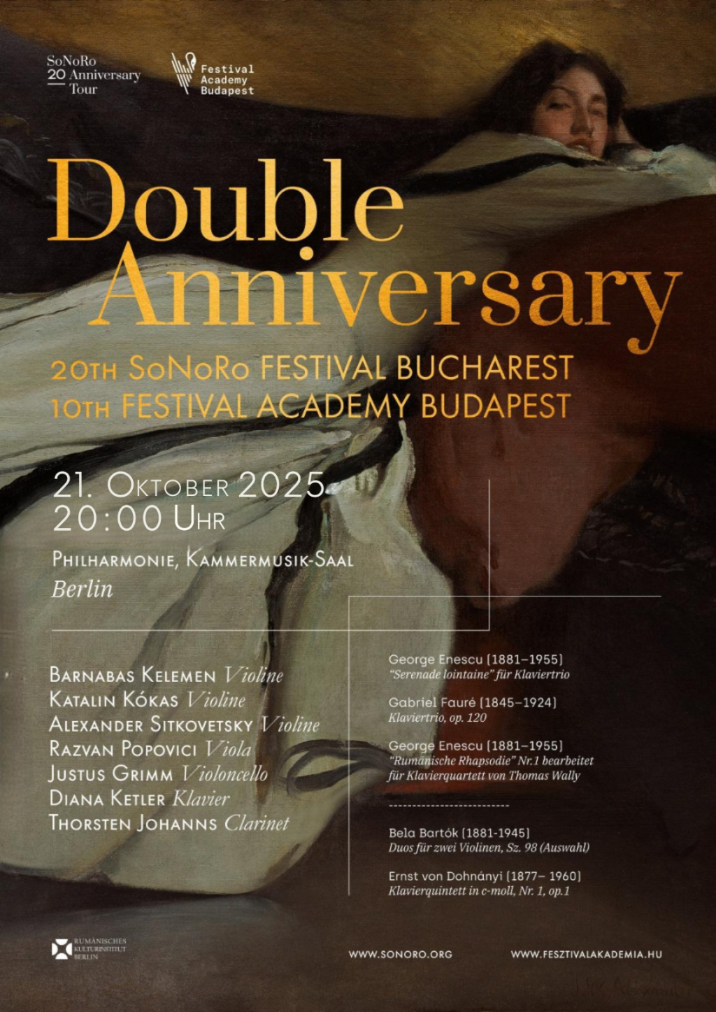 Das Rumänische Kulturinstitut „Titu Maiorescu” Berlin unterstützt das SoNoRo-Festival und die internationale Jubiläumstournee „SoNoRo On Tour” in Deutschland, mit der 20 Jahre künstlerischer Exzellenz des SoNoRo-Vereins gefeiert werden. Die Tournee markiert auch 30 Jahre Exzellenz in der europäischen Kammermusik, einen Höhepunkt in der Entwicklung des SoNoRo-Festivals in Bukarest (20 Jahre) und der Festival Academy in Budapest (10 Jahre). Die Veranstaltungen der Tournee, die in großen Städten Europas und Amerikas stattfinden, rücken die Kammermusik Rumäniens in den Vordergrund und stärken die Beziehungen zwischen rumänischen Künstlern und dem internationalen Publikum.