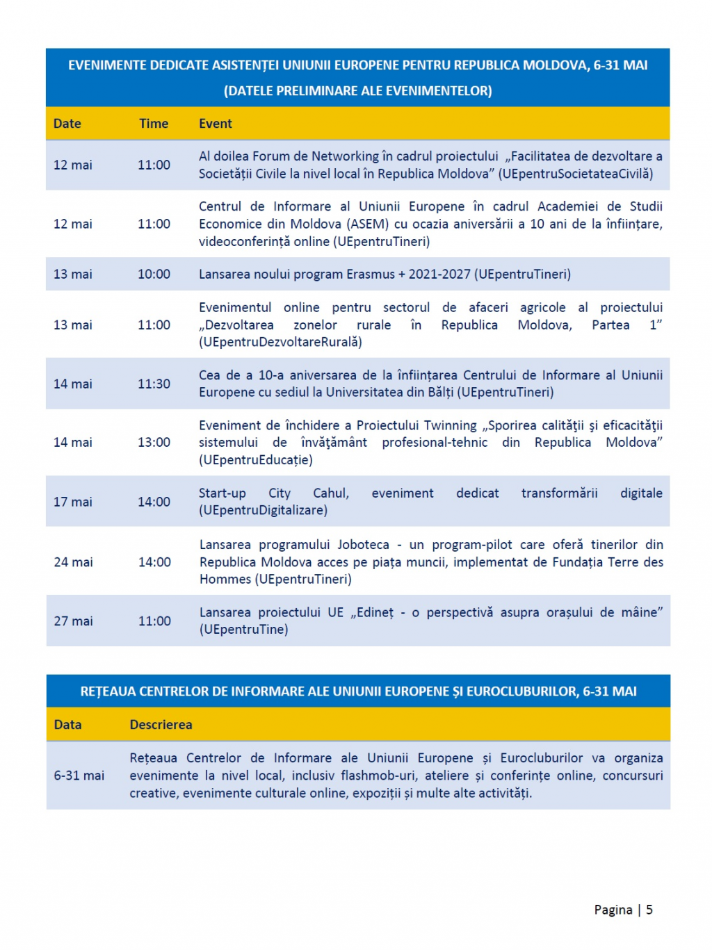 În premieră, Ziua Europei este marcată în Republica Moldova timp de o lună (9 - 31 mai 2021), la TV, Radio, online.