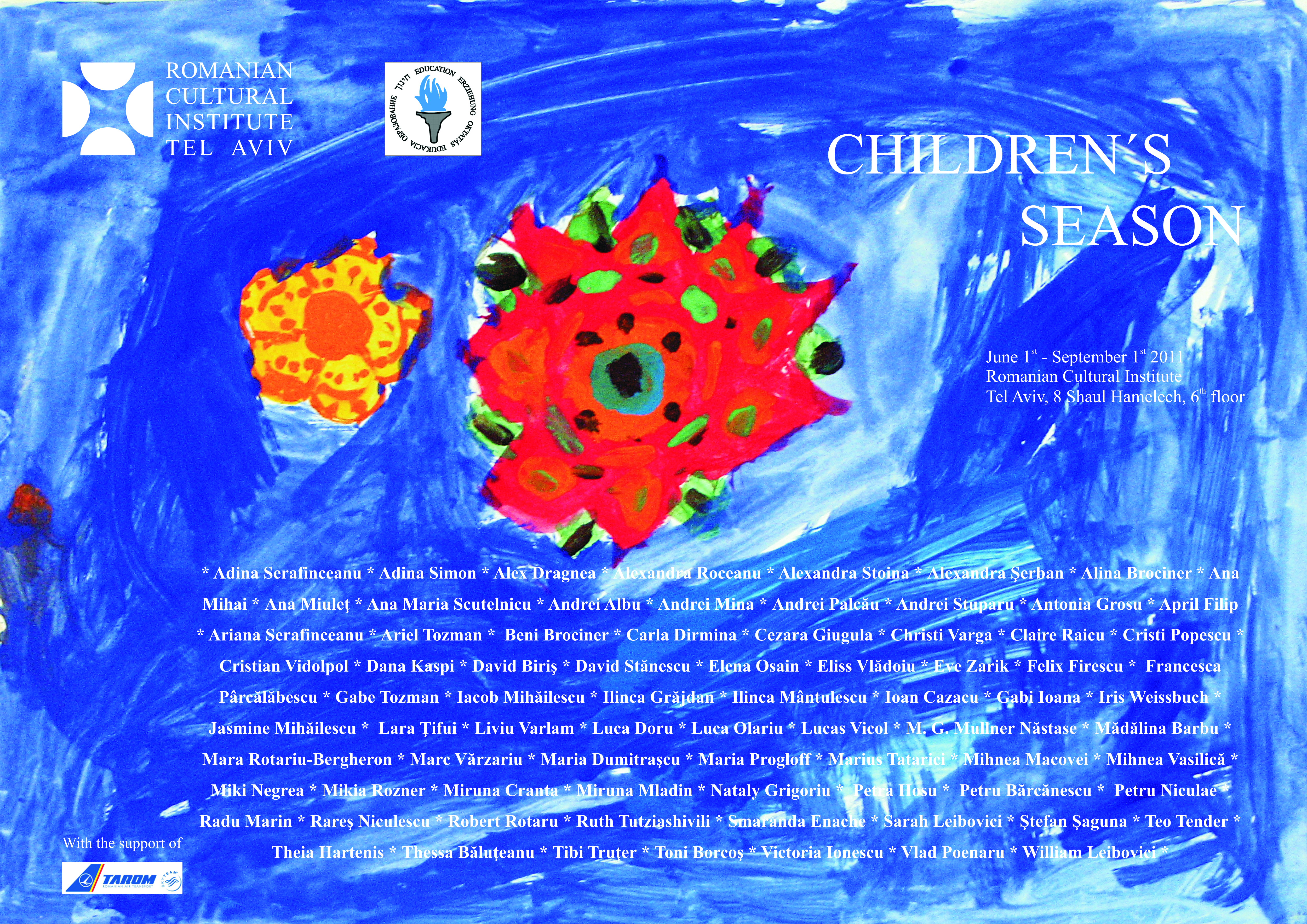 On the occasion of the International Children's Day, the Romanian Cultural Institute in Tel Aviv hosts the exhibition „Children's Season", which includes 120 works painted on paper or cardboard, in tempera or aquarelle. The works belong to the pupils of the Lauder Reut Educational Complex from Bucharest, Romania – 1st till 12 nd grades, under the guidance of Marius Frăţilă, arts teacher.
