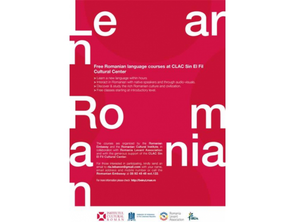 Cursurile pentru începători vor avea loc în perioada 26 septembrie – 15 decembrie 2011, în fiecare luni şi joi, în intervalul orar 18.00 – 20:00, la Centrul Cultural CLAC Sin El Fil. Programul de 12 săptămâni este gratuit şi este deschis tuturor celor interesaţi de studiul limbii române. Cursul urmează normele impuse de Consiliul European al Limbilor și îşi propune să dezvolte atât abilităţile de înţelegere şi exprimare, cât şi cele patru competenţe de bază în comunicare: ascultare, vorbire, citit şi scris. Nu în ultimul rând, cursul vizează stabilirea unui prim contact cu elemente de cultură română.