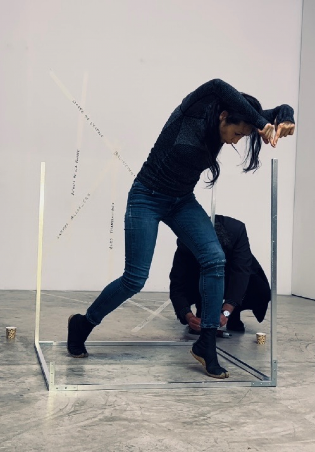 4. Proiecție video : La leçon sur le cube / Lecția despre cub performance de Michiko Fou, pe poeme de Matei Vișniec;