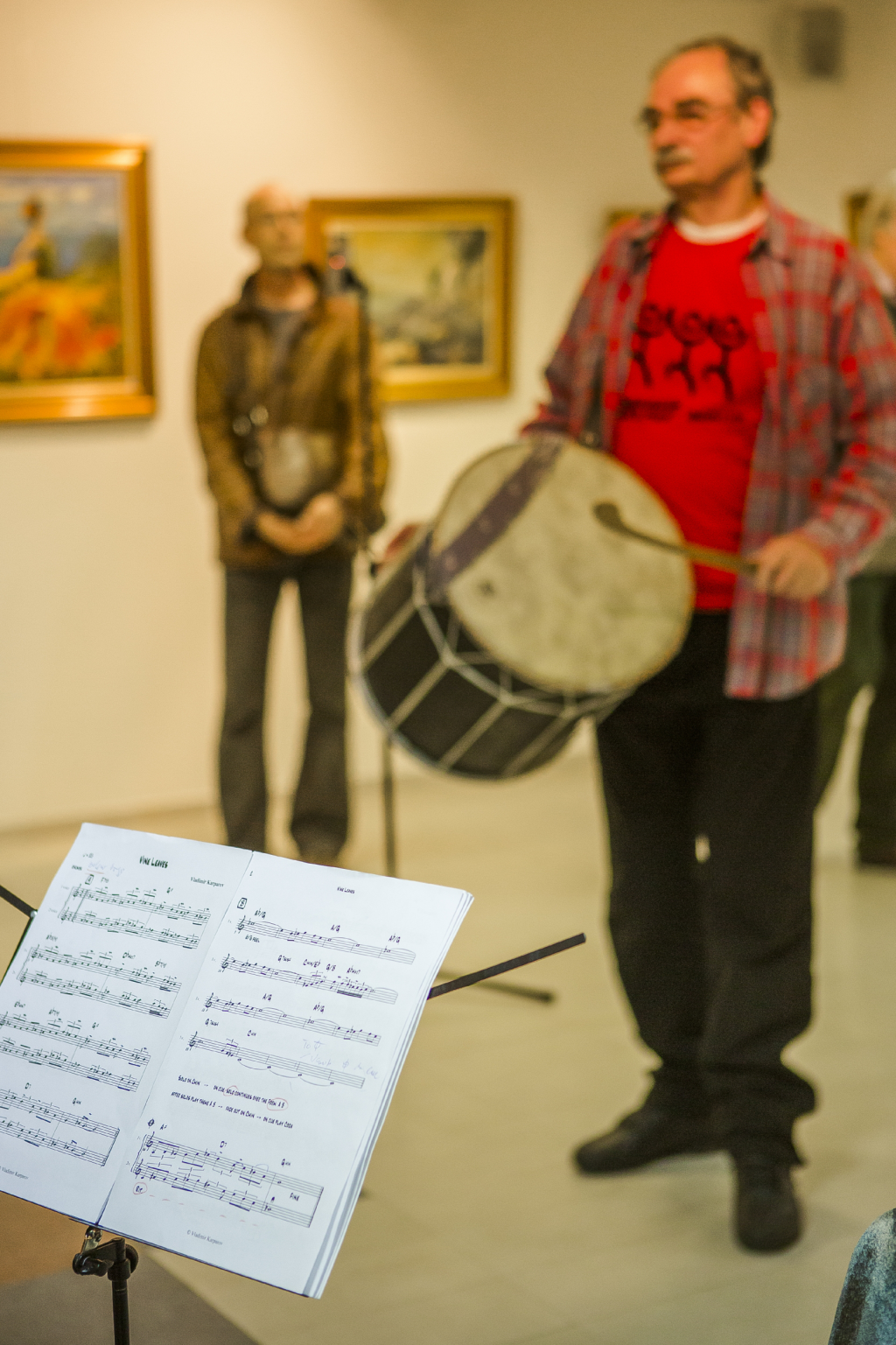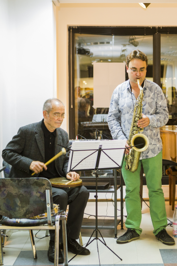 Seara va fi acompaniată de un duo muzical inedit, alcătuit din percuționistul român Adrian Ciceu Cicero şi saxofonistul bulgar Wladimir Karpatov. Aceştia vor interpreta compoziţii proprii, piese experimentale, melodii de jazz şi muzică tradiţională balcanică.
