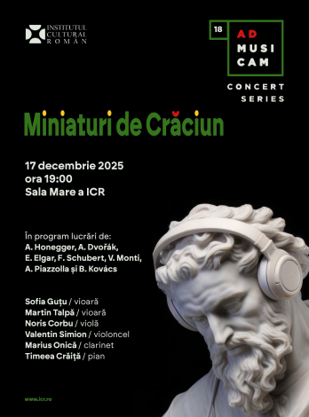 İstanbul “Dimitrie Cantemir” Romen Kültür Merkezi, 2025 Romanya Ulusal Günü kutlamaları kapsamında, Romanian Chamber Orchestra Trio’sunun (Theodor Andreescu – keman, Cristian Andriș – viyola, Darius Tereu – çello) icra edeceği özel bir klasik müzik