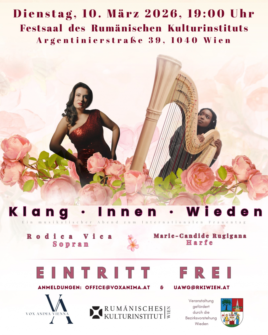 Concertul este organizat în parteneriat cu Asociația Vox Anima Vienna, cu sprijinul Primăriei districtului Wieden.
